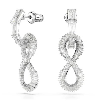 Swarovski Hyperbola drop earrings, Infinity, White, Rhodium plated