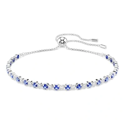 Maximum Length: 24 cm; Width: 0.3 cm; Clasp Type: Sliding Ball Extraordinary Beauty: Add a pop of colour to your look with this vibrant rhodium-finished tennis bracelet, featuring a glimmering sequence of deep blue and clear round-cut crystals in alternating sizes Ultramodern Elegance: This dazzling high-fashion accessory catches the light from every angle, instantly elevating any outfit and stealing the spotlight with its sophisticated sparkle Luxurious Style: Wear this shimmering bracelet on its own or pair it with other iconic pieces of jewellery from the Swarovski Matrix collection for maximum brilliance Designed to Last: Swarovski jewellery maintains its brilliance when simple care practices are observed; remove before contact with water, lotions or perfumes and polish with a lint-free cloth Items Delivered: 1 x Swarovski Matrix tennis bracelet with blue and clear round-cut crystals in a rhodium-finished setting; 1 x Swarovski bracelet box
