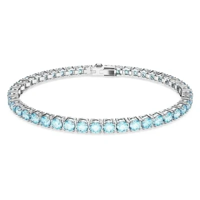 Surround your wrist in vibrant jewels with this glittering bracelet from the Matrix Tennis family In perfectly formed fluidity, the design features a row of round stones in light aquamarine on a rhodium plated setting for a cool combination Wear it alone, or pair it with other pieces from the Matrix Tennis family