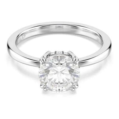 Swarovski Stilla cocktail ring, Round cut, White, Silver tone finish