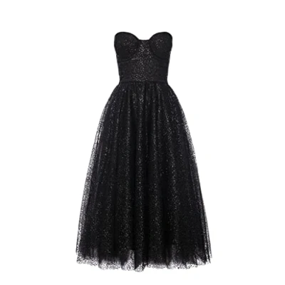 An absolutely phenomenal dress that we have dreamed of for years. The dress has a very feminine cut - the top is a corset with shaped cups. The princess bottom of the dress - beautifully flared, the ankle-length midi length is elegant and gives the dress a special flair. The dress shines beautifully - the top layer is covered with silver particles. The dress looks best if it fits snugly to your figure - if you are between two sizes, we recommend you choose a smaller size. If the teddies are too big, you can simply carry an extra bardot underneath. Size: 38 (M) | Bust: 72 cm | Waist: 76 cm | Total Length: 100 cm | Material: Lining - 84% Cotton 6% Elastane 10% Padding, Top Layer - 100% Polyester