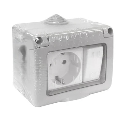 IP55 waterproof base switch, designed to withstand adverse conditions thanks to its high protection against dust and water. Ideal for external use, allows charging up to 16A and 250V. Waterproof base switch, ideal for outdoor use thanks to its IP55 rating that ensures resistance against dust and water. Supports up to 16A and 250V. This IP55 waterproof base switch is ideal for outdoor environments, offering high protection against dust and water. Supports currents up to 16A and 250V, ensuring safety and efficiency in use. Waterproof and dustproof base switch with IP55 certification. Ideal for external use, supports up to 16A and 250V. Switch with IP55 waterproof base, designed to ensure protection against dust and water jets, ideal for outdoor or wet environments. It ensures reliable operation with a capacity of 16A and 250V.