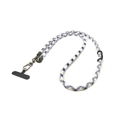 Variably adjustable neck strap for attaching to smartphone cases Attachment via telephone tether pad (approx. 6.0 x 2.5 cm) - extra thick band (diameter: approx. 1 cm) Note: The strap is only compatible with hard plastic cases and closed bottom. Loop diameter: approx. 60 cm (variably adjustable). Colour: purple/white. Strap material: nylon, TPU Product weight: 80 g. Package weight: 4 g (poly bag). System-S model number: 84536589