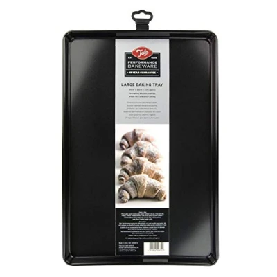 VERSATILE USE: This Baking Tray is perfect for baking for biscuits, cookies and various types of batch baking, Also perfect for fries, roasting vegetables and general use, measuring 44.5x29.9x2.1 cm and inner dimensions of 43.1x28.5x2.1 cm NON-STICK COATING: Features a double-layered Whitford Eclipse non-stick coating for effortless food release and easy cleaning, reducing the need for additional greasing ROBUST: Made with robust heavy weight carbon steel; The thick carbon steel is incredibly strong, long-lasting and is an excellent heat conductor; The coating is so strong it is safe for use with metal utensils OVEN SAFE: Ideal for a variety of baked goods; oven, fridge, and freezer safe, giving you the flexibility to store or bake at different temperatures 10 YEAR GUARANTEE: Backed by a 10-year guarantee, ensuring you receive a high-quality, long-lasting product designed for frequent baking and use