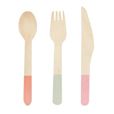 Talking Tables Disposable Wooden Cutlery Set with Pastel Colour12 Bamboo Forks, Knives, SpoonsEco Friendly, Biodegradable, Compostable for Garden Party, Camping, Travel, Picnic, BBQ, Outdoor Dining