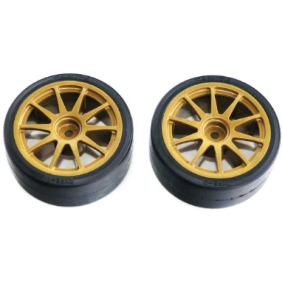 TAMIYA 300051219 Drift Tyres Type D with Rims, 26 mm, Pack of 2, Gold