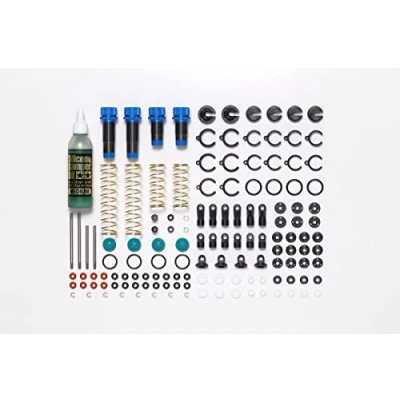 Aluminium oil pressure shock absorber for Tamiya TT-02B (Buggy) or DF-03 models Aluminium damper cylinders coated on the inside for particularly soft and even cushioning Improves driving behaviour 2 x front dampers and 2 x rear dampers including springs and oil Includes accessories for adjusting the spring preload etc., Manufacturer: TAMIYA