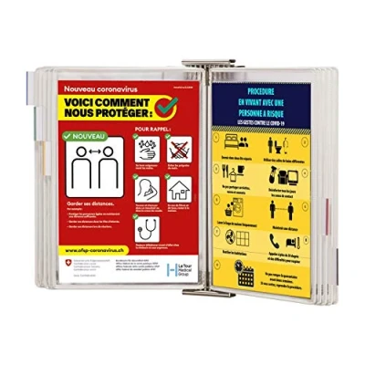 Tarifold Fr 414562 Sterifold Stainless Steel Wall Mount with 10 Swivel Pockets A4 Document Holder, White Frame