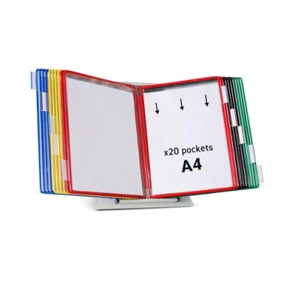 AmazonTarifold desk stand Light grey desk stand complete with 20 A4 pockets in assorted colours Five index tabs for every 10 pages Four side stops to provide required reading angle