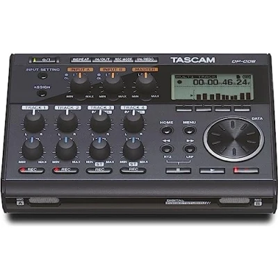 6-Track Digital Pocketstudio. Portable, ultra-compact and easy-to-use multitrack recorder. Simple, intuitive user interface. High-quality recording (44.1kHz/16-bit). Recording media: SD/SDHC card (2GB SD card included). Built-in stereo condenser microphone. Two Mic/Line inputs. Dedicated Level and Pan controls. Track bounce feature. Dedicated stereo master track. Locate features. Repeat playback. Editing functions. Undo/Redo feature. Chromatic Tuner/Metronome. USB 2.0 port for file transfer to/from computer (exports/imports WAV tracks). Power supply by AA batteries or optional AC adapter. Stand adapter (¼ inch) on bottom side.