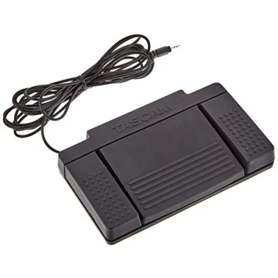 3-pedal footswitch (left, center, right) for the GB-10, LR-10, DP-03 and other Tascam recorders and players. Perfect to control transport and other functions (Function can be set by the controlled unit). Power supply by two AA batteries (manganese, alkaline or NiMH rechargeables). Power consumption: 3 mW. Output format: UART signal (9600 bps baud rate, even parity). Battery charge indicator on bottom side. 2.5-mm TRS plug with 3.9 m cable Dimensions (W x H x D): 190 mm x 32 mm x 122 mm. Weight: 0.55 kg.