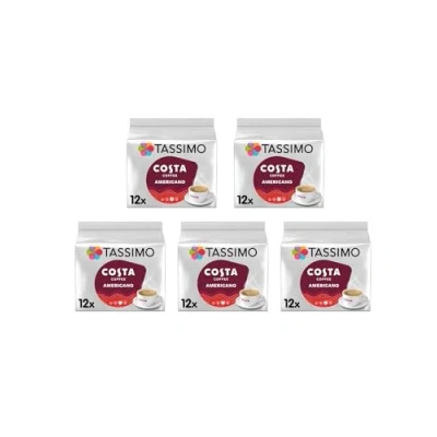 Tassimo Costa Americano Coffee Pods, 12 Servings, Pack of 5, Total 60 Drinks