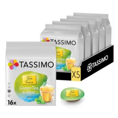 Tassimo Tea Time Capsules Green with Mint, Pack of 5 (5 x 16 Drinks)