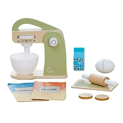 Teamson Kids Little Chef Frankfurt Wooden Mixer Play Kitchen Accessories Green 10 Pieces