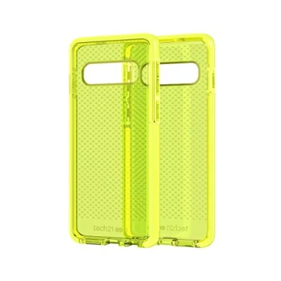 Tech Enterprises Protective Samsung Galaxy S10 Case Thin Patterned Back Cover with FlexShock Evo Check Neon Yellow