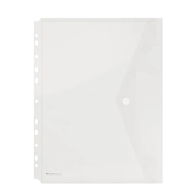 DONAU -Envelope folder with clip 8540001PL-00. Folders with press stud / document folder for school and office - transparent, made of ecological polypropylene/plastic/plastic with a thickness of 200 µm The euro perforation allows them to be placed in any folder High-quality document case with a permanent clip for documents, certificates, tickets photos and certificates up to DIN A4 size. For school office quality. Notch for easier insertion and better access to documents Welded on the side Envelope folder with Euchro holes for filing in folders, ring binders and folders, dimensions: 307 x 235 mm, model: 8540001PL-00 Document folder transparent, snap button folder, format: A4 With the green dot - participation in the recycling and recycling system, which results from the provisions of Polish and EU law