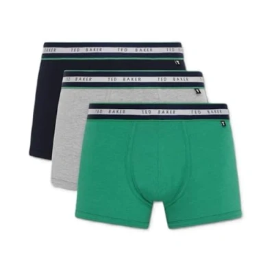 Ted Baker Mens Trunks, Cotton, 3 Pack, (TBB02), Navy/White/Green, M