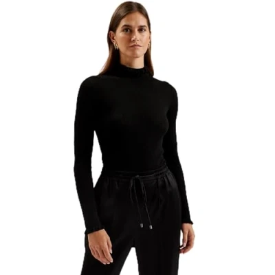 Ted Baker Women's Wmk janittt Rib Funnel Neck Frill Jumper Sweater, Black, 16