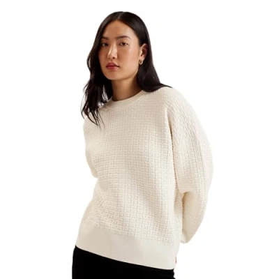 Ted Baker Women's Wmk tedtyy Jacquard Knitted Crew Neck Sweater, Ivory, 16