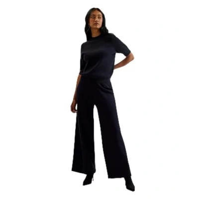 Ted Baker Women's Wmt ellenr Ribbed Knitted High Waist Wide Leg Trouser Dress Pants, Navy, 16