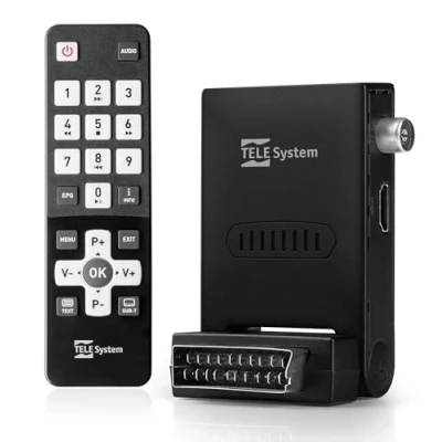 TELE System FACILE STEALTH/02 Mini DVB T2 HEVC Digital Terrestrial Decoder SCART, HDMI, with Remote Control EASY Large Buttons