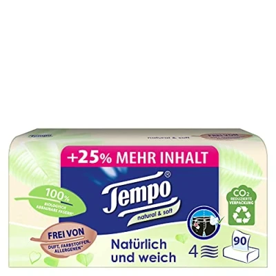 Free from fragrance, dyes and allergens. Regularly tested for the most important 26 allergens, as listed in the list in Annex III of the EU Cosmetics Regulation. **Biodegradable handkerchiefs in accordance with EN 14995. 100% biodegradable fibres from natural and controlled origin **Biodegradable handkerchiefs in accordance with EN 14995. Natural cream-white cloth colour thanks to 30% unbleached fibres Machine washable CO2 Reduced Recyclable Tissue Box with Paper Opening *** The packaging is recyclable according to ISO 18604 for multiple uses. Actual recycling depends on several factors, e.g. on the regional availability of a recycling system. Reduction of carbon footprint of packaging by using recycled plastic, based on essity performed and third party verified life cycle analyses.
