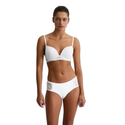 Padded cups for a natural, gently shaped silhouette Without underwire - maximum comfort while maintaining good grip Delicate lace made from GRS certified recycled material Soft, elastic materials for high wearing comfort
