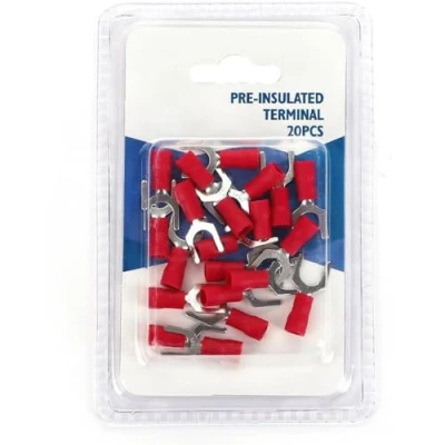 The SV1.25-6 pre-insulated terminal in red offers excellent visibility for safe and efficient wiring, presented in a 20-unit blister pack for optimal organization and storage. SV1.25-6 pre-insulated terminal in red, presented in a blister pack of 20, ensures efficient and safe electrical connections, ideal for commercial and residential projects. The SV1.25-6 pre-insulated terminal in red comes in a handy blister pack of 20, ideal for organization and easy handling. The SV1.25-6 pre-insulated terminal in red is ideal for a quick and secure electrical connection, presented in a handy 20-unit blister pack that facilitates organization and access in any electrical installation.