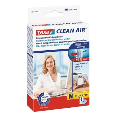 The medium Tesa Clean Air fine dust filter is intended for the ventilation outlet of your laser printer. The printer filter blocks up to 94% fine dust that comes out of the printer. Fine dust particles are so small that you cannot see them with the naked eye. This filter prevents them from getting into the air and from being inhaled on a daily basis. The filter is made of 3-layer fleece, to which fine dust adheres, but on which no mold can grow. The filter can be secured with self-adhesive Velcro that is supplied within the pack.