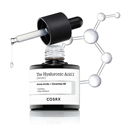 The Hyaluronic Acid 3% Serum: 3x Hydration. Composed of a specialized complex of Hyaluronic Acid, Ceramides, and Natural Moisturizing Factors, the serum locks hydration deep in your skin. Key Benefits: Based on real results from consumers' self assessments, the Hyaluronic 3 Serum replenishes hydration, visibly plumps the skin, and improves dryness. Dermatological Ingredients: 3% Pure Hyaluronic Acid helps retain mositure and instantly plumps skin. Ceramide & NMF (Natural Moisturising Factors) strengthen the skin's barrier. How to Use: Apply 2-3 drops to your face and neck once or twice daily. Can be applied under the eye area; avoid direct eye contact. *Perform a patch test on the body before using on the face. COSRX Standards: COSRX Standards: All COSRX products are formulated with skin-friendly ingredients that alleviate irritated skin. Hypoallergenic, Dermatologist tested, Animal Testing-FREE, Parabens-FREE, Sulfates-FREE, Phthalates-FREE
