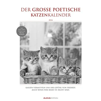 The Large Poetic Cat Calendar 2024 Picture A3 (29.7 x 42 cm) with Beautiful Quotes Black/White Animal Wall Planner