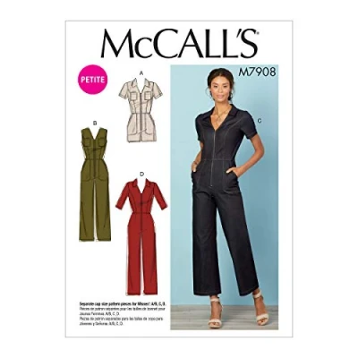 Includes sewing templates, instructions, fabric recommendations, pattern pieces, and sizing guides for (1) romper and (3) women's jumpers. These clothing patterns for women can be made to fit sizes 14, 16, 18, 20, and 22. Jumpsuit patterns have fitted bodice with princess seams, exposed front zippers, and semi-fitted straight leg pants with different neckline, sleeve, pocket and length variations. All McCall's sewing patterns are printed and designed in the USA and feature easy-to-follow English, Spanish, and French instructions. Create customize pieces to fill out your wardrobe with these easy to sew clothing patterns for women!