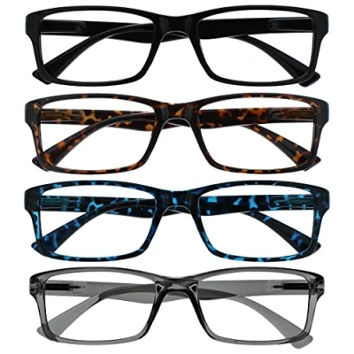 The Reading Glasses Company Pack of 4 Readers Black Brown Blue Grey Designer Style Men Women Aid RRRR92 1237 +3.00, Black/Brown/Blue/Grey, +3,00 Dioptrien