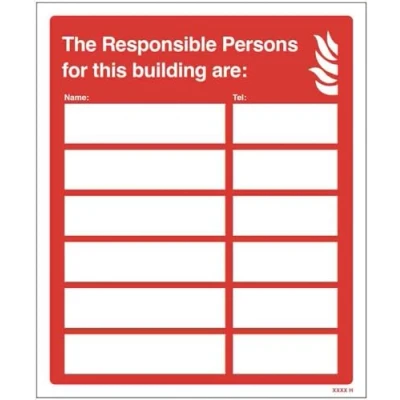 The Responsible Persons for this building are: (space 6) adapt a sign 215x310mm