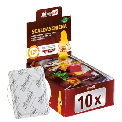 10 PIECES OF EXTRA WARM PADS: Our original Thermopad body warmers provide up to 12 hours of warmth. The pads with 133 x 95 mm can be used whereever needed: back, neck, chest or as pocket warmer. READY FOR IMMEDIATE USE: Just open the packaging, warmth is activated by contact with air, heats up to 55°C maximum. No pre-heating necessary. Just remove the protective foil and stick the warmer to the clothing layer next to your body. 12 HOURS OF WARMTH: Thanks to its long heat duration the ideal compagnon for outdoor sports like skiing, hiking, chasing or football or soccer. Unopened storable for several years. Single use product. NATURAL INGREDIENTS: The pads heat up automatically due to the oxidation of its natural ingredients (Iron powder, salt, charcoal, water and vermiculite). THERMOPAD is the first climateneutral supplier of heatpads in EUROPE. THERMOPAD is OFFICIAL supplier of the German National Ski Team. Hand warmer, toe warmer, foot warmer, neck warmer, body warmer or heat belt - WE KEEP YOU WARM. ALWAYS. ANYWHERE.