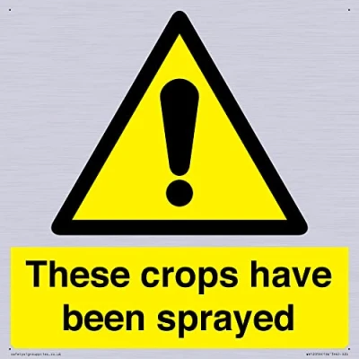 W001 : General Warning This sign is made from plastic semi-rigid silver Comes with3mm Corner Holes. S20 square Sign Text: These crops have been sprayed