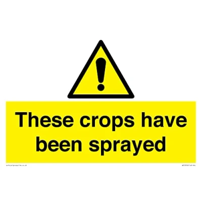 W001 : General Warning This sign is made from plastic rigid 3mm 3mm plastic sign with foam core. Can be screwed, stuck with adhesive or hung with a hanging kit. Not suitable for cable ties. A4 landscape Sign Text: These crops have been sprayed