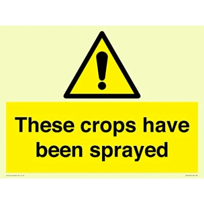 W001 : General Warning This sign is made from plastic semi-rigid photoluminescent A3 landscape Sign Text: These crops have been sprayed