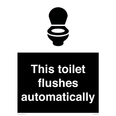 I036 : WC Toilet This sign is made from plastic semi-rigid 1mm 1mm thin plastic sign, can be screwed, stuck with adhesive, or attached with cable ties. Not suitable for hanging. A3 portrait Sign Text: This toilet flushes automatically