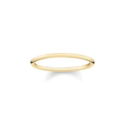 Thomas Sabo women's ring in gold is a token of romantic love The simple band ring is a delicate classic and presents itself in a delicate elegance The ring is made of high quality 925 sterling silver and has 750 yellow gold plating It is perfect as a gift for that special person in your life or as a treat for yourself Ring size is 54