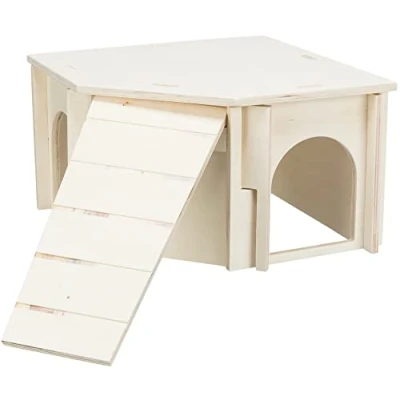 The corner house for small animals is made without brackets and nails. . The corner house for small animals has a viewing area on the roof and has two entrances. . The small animal house is made from untreated wood and is for rabbit. RPA2 0232023 Dimensions: 40 23 40 cm International products have separate terms, are sold from abroad and may differ from local products, including fit, age ratings, and language of product, labeling or instructions.