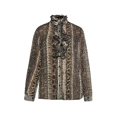 Ruffle Blouse Shirt Lightweight chiffon material With snake print High-closing ruffle collar Long sleeve with cuff