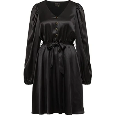 Romantic dress in satin look Decorative buttons with golden shimmering edge Slightly gathered at the waist With tie belt Lightweight balloon arm
