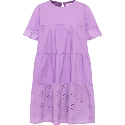 dress with hole lace Made from pure cotton Short sleeves with ruffle Voants with lace Loose A-line