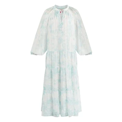 Tie Dye Print Maxi Dress Gold thread Semi-transparent sleeves V-neck with tie Elasticated cuffs