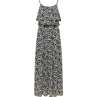 Feminine maxi dress All-over floral print Adjustable straps Flounce at neckline With inner lining