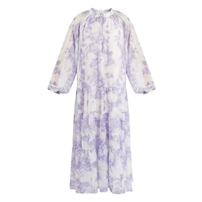 Tie Dye Print Maxi Dress Gold thread Semi-transparent sleeves V-neck with tie Elasticated cuffs