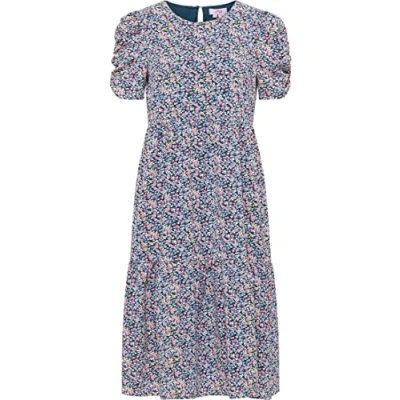 Floral Print Midi Dress Made of soft material Ruched sleeves Tiered Valances Small button in the neck area