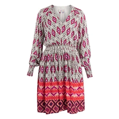 Midi dress with all-over print Colourful ethnic print Made from soft viscose Long sleeves with smocked ends Smocked waist