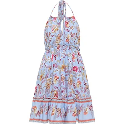 Summer dress with floral print Made from soft viscose With bindable spaghetti straps Plunging back plunge Ruffle at skirt hem